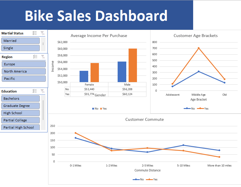Cleaned and structured bike sales data in Excel, then designed an interactive dashboard to visualize key metrics.
